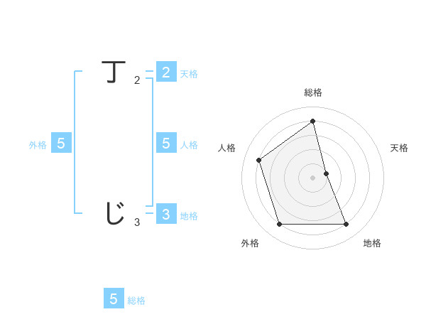 丁 じさんの総格は5画の4点!