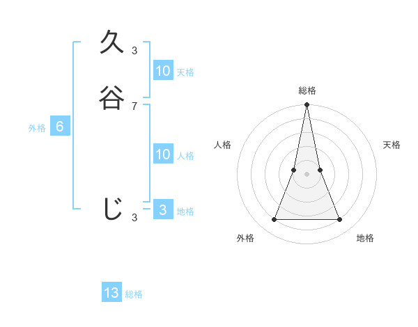 久谷 じさんの総格は13画の5点!