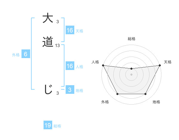 大道 じさんの天格は16画の5点!