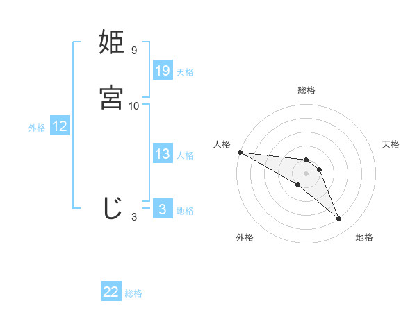 姫宮 じさんの総格は22画の1点!