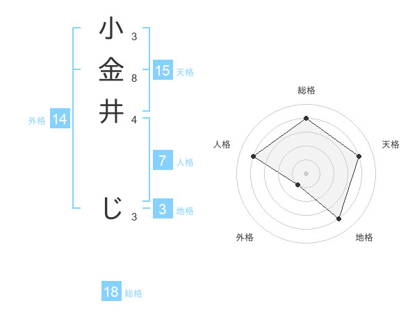 小金井 じさんの天格は15画の4点!