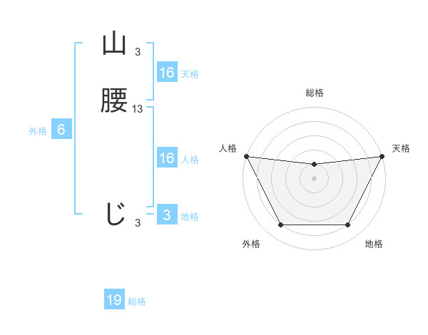 山腰 じさんの天格は16画の5点!