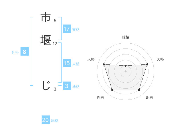市堰 じさんの総格は20画の1点!