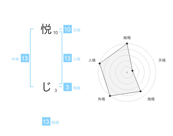 悦 じさんの総格は13画の5点!