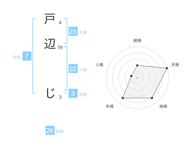 戸辺 じさんの外格は7画の4点!