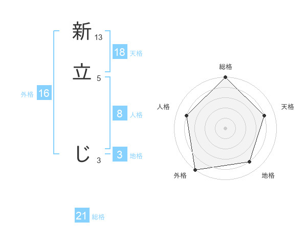 新立 じさんの総格は21画の5点!