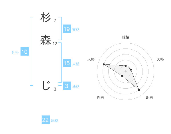 杉森 じさんの総格は22画の1点!