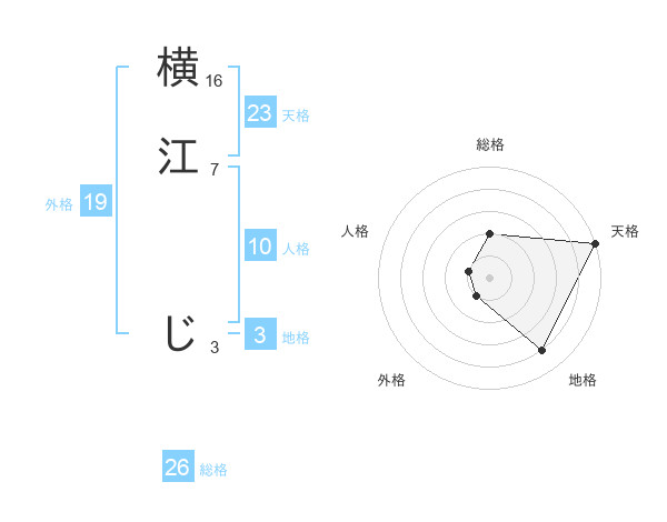 横江 じさんの天格は23画の5点!