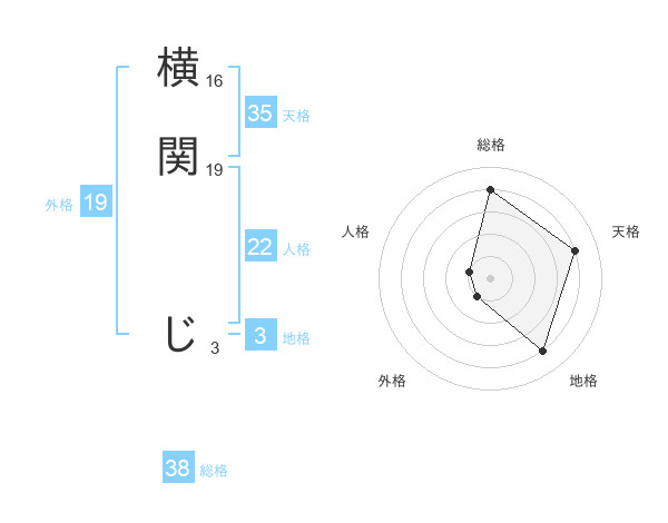 横関 じさんの総格は38画の4点!