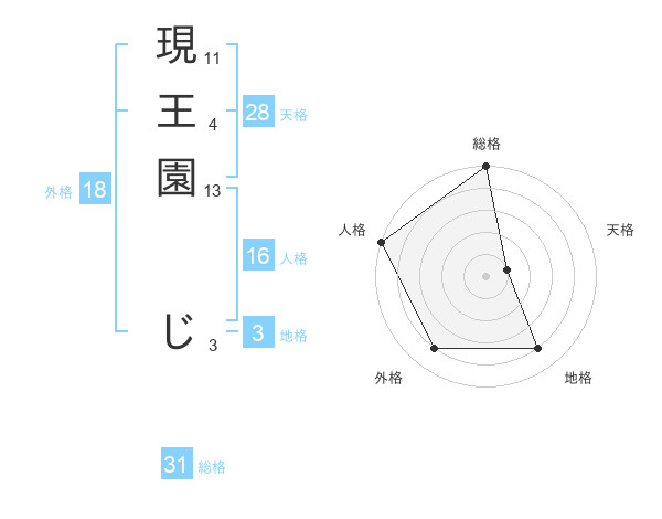 現王園 じさんの総格は31画の5点!