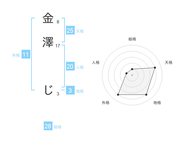 金澤 じさんの天格は25画の4点!