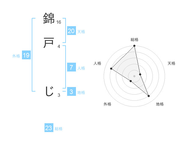 錦戸 じさんの総格は23画の5点!