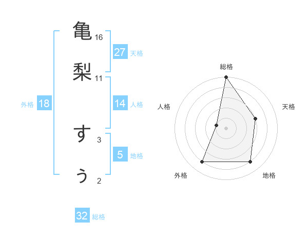 亀梨 すぅさんの総格は32画の5点!