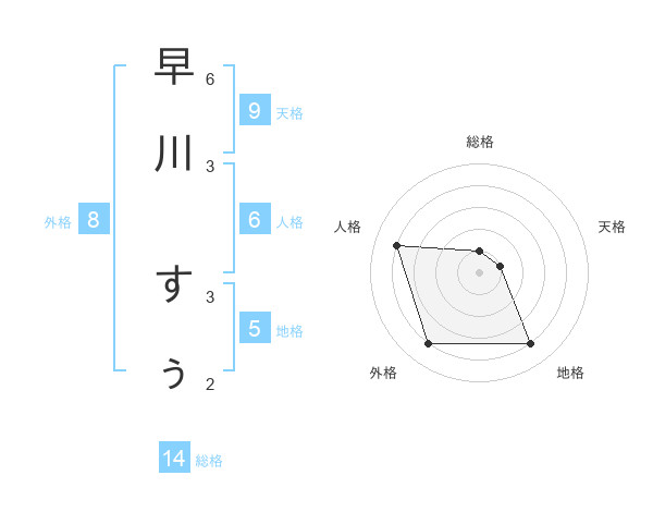 早川 すぅさんの外格は8画の4点!