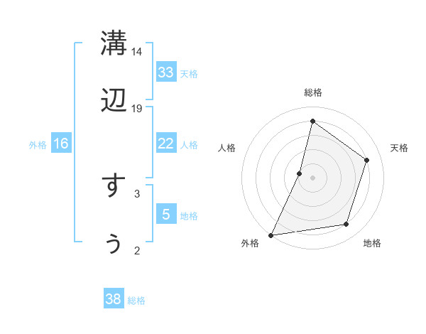溝辺 すぅさんの外格は16画の5点!