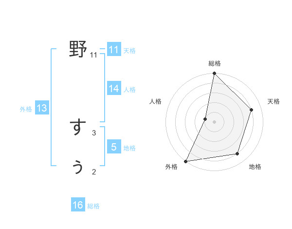 野 すぅさんの外格は13画の5点!