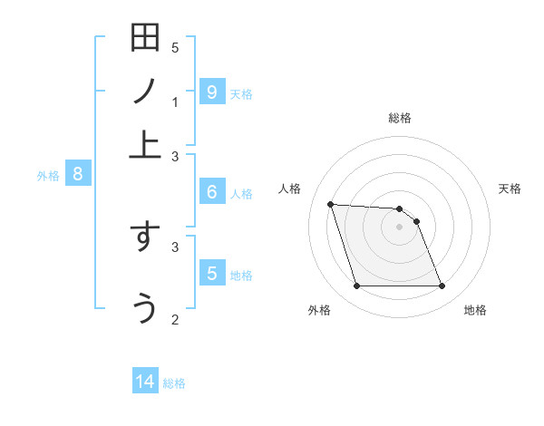 田ノ上 すうさんを姓名の画数から五運を鑑定
