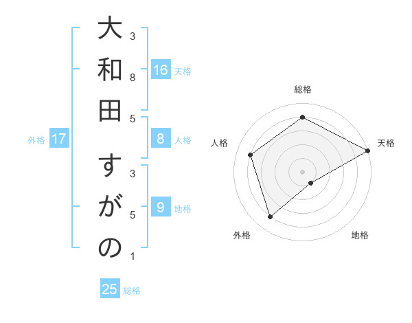 大和田 すがのさんを姓名の画数から五運を鑑定