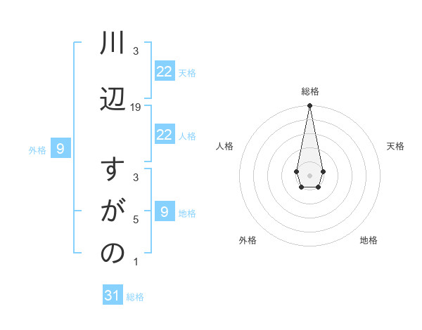 川辺 すがのさんの総格は31画の5点!