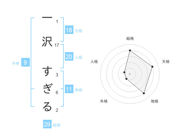 一沢 すぎるさんを姓名の画数から五運を鑑定