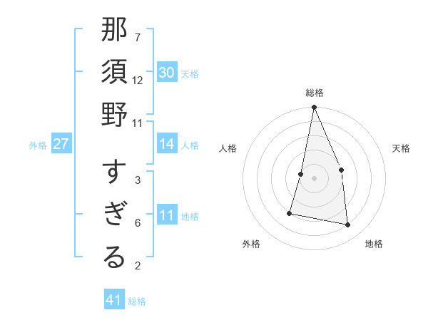那須野 すぎるさんを姓名の画数から五運を鑑定