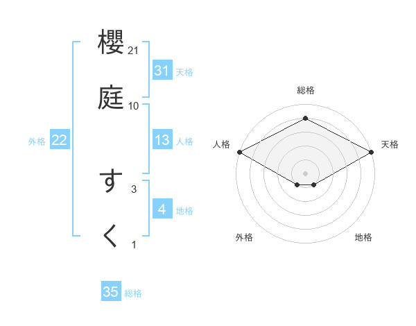 櫻庭 すくさんの総格は35画の4点!