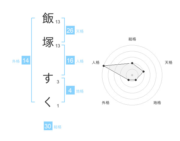 飯塚 すくさんを姓名の画数から五運を鑑定