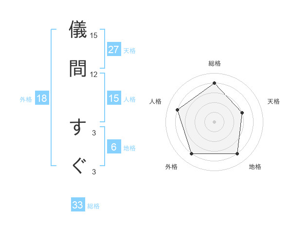 儀間 すぐさんを姓名の画数から五運を鑑定