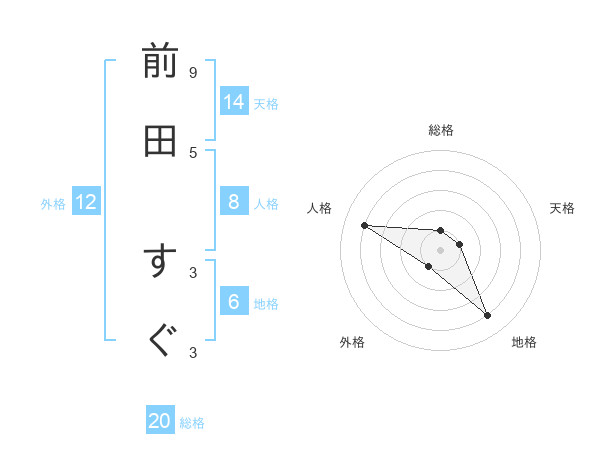 前田 すぐさんの総格は20画の1点!