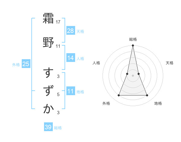 霜野 すずかさんの総格は39画の5点!