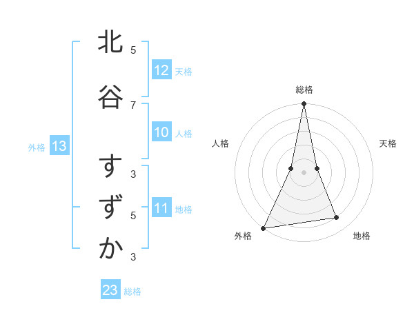北谷 すずかさんの総格は23画の5点!