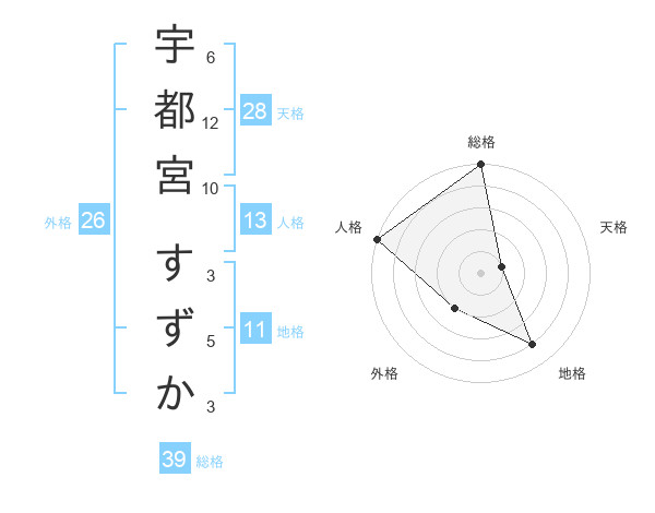 宇都宮 すずかさんを姓名の画数から五運を鑑定