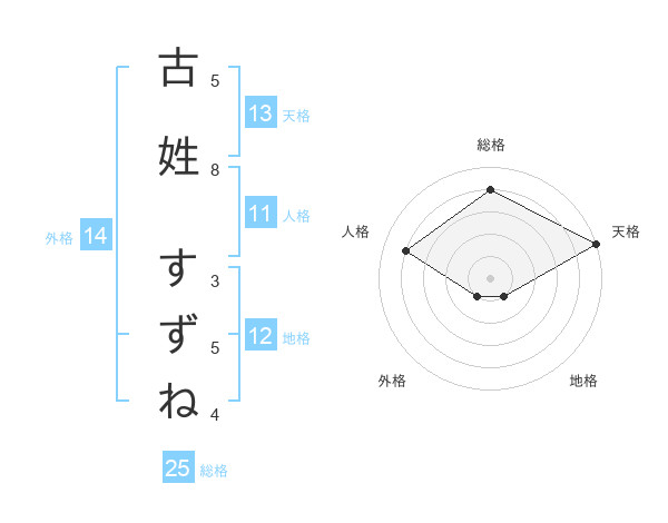 古姓 すずねさんの天格は13画の5点!