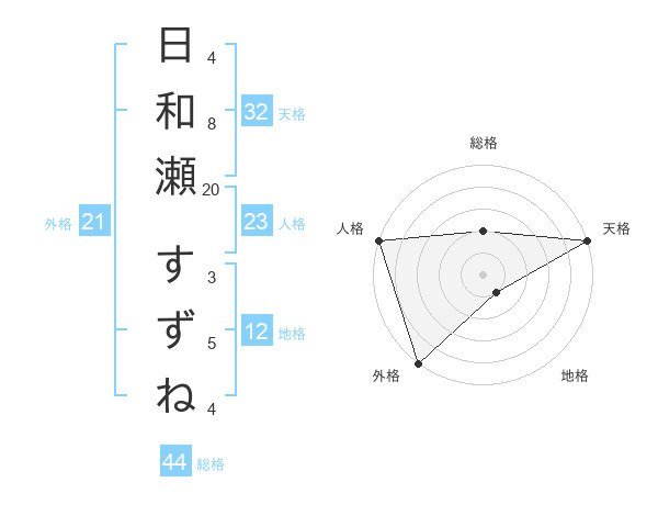 日和瀬 すずねさんの天格は32画の5点!