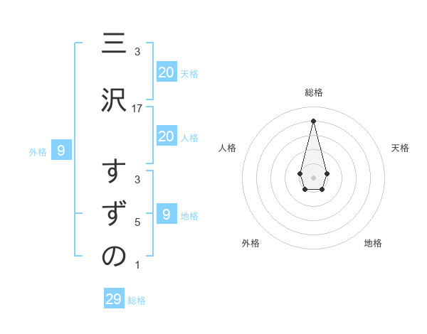 三沢 すずのさんの総格は29画の4点!