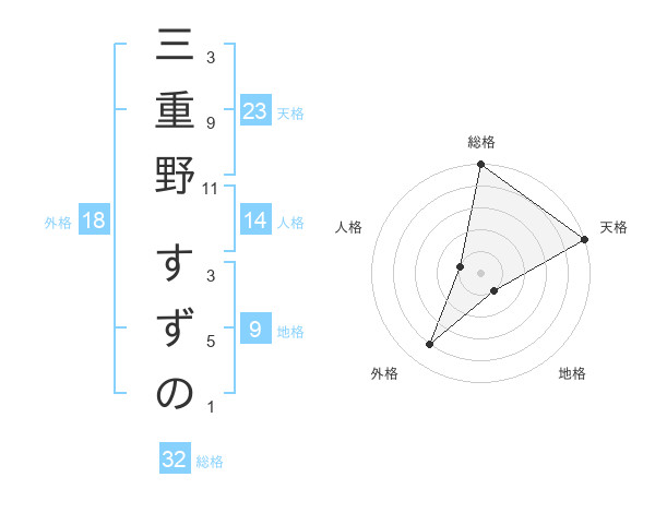 三重野 すずのさんの天格は23画の5点!