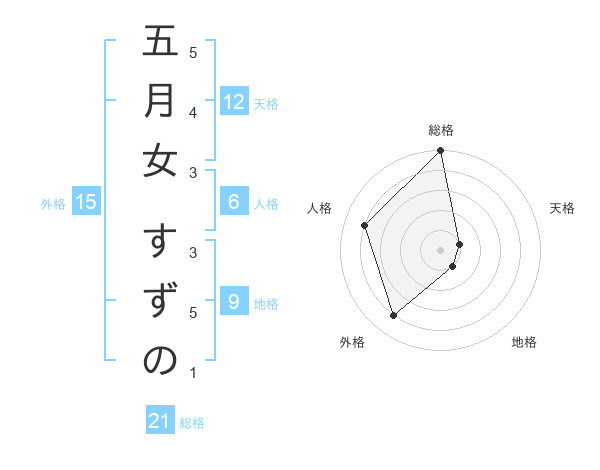 五月女 すずのさんを姓名の画数から五運を鑑定