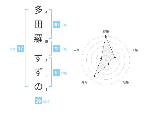 多田羅 すずのさんの総格は39画の5点!