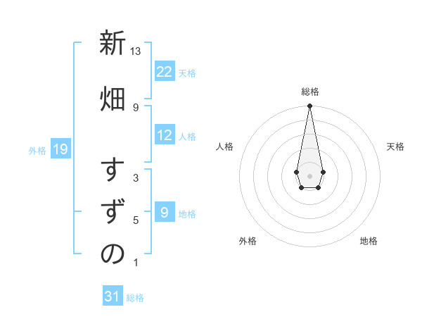 新畑 すずのさんを姓名の画数から五運を鑑定