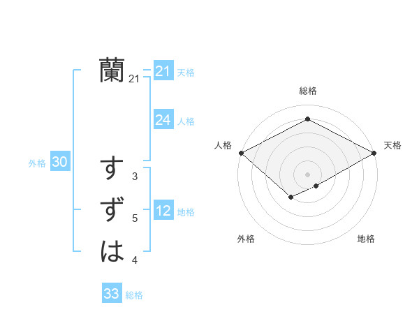 蘭 すずはさんの天格は21画の5点!