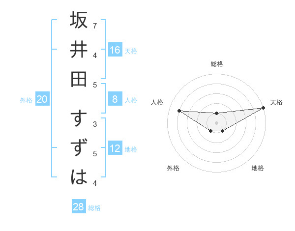 坂井田 すずはさんを姓名の画数から五運を鑑定