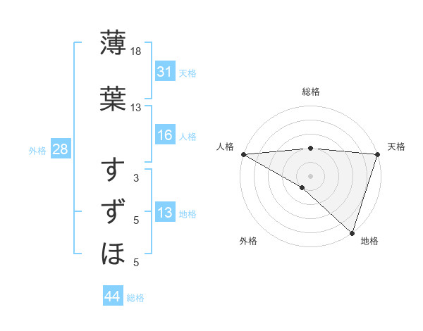 薄葉 すずほさんの地格は13画の5点!