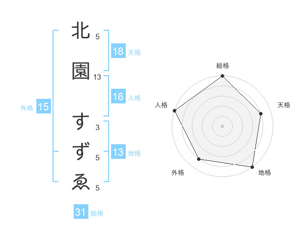 北園 すずゑさんを姓名の画数から五運を鑑定