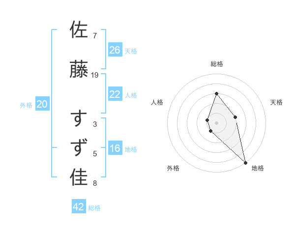 佐藤 すず佳さんの総格は42画の3点!