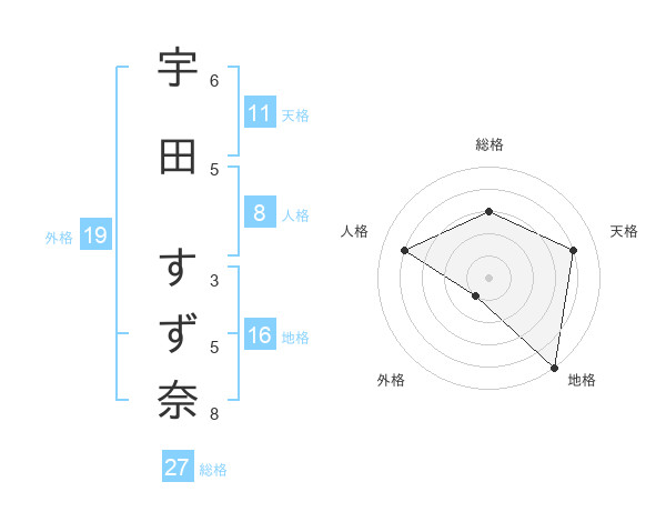 宇田 すず奈さんを姓名の画数から五運を鑑定