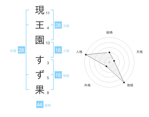 現王園 すず果さんを姓名の画数から五運を鑑定