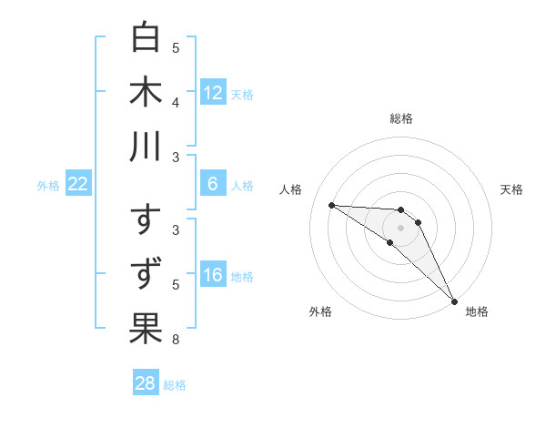 白木川 すず果さんを姓名の画数から五運を鑑定