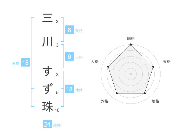 三川 すず珠さんの総格は24画の5点!
