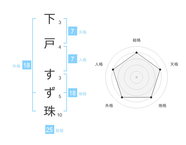 下戸 すず珠さんの総格は25画の4点!