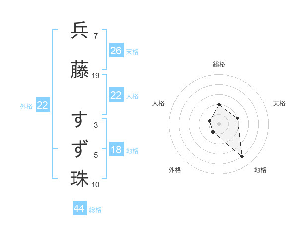 兵藤 すず珠さんの総格は44画の2点!